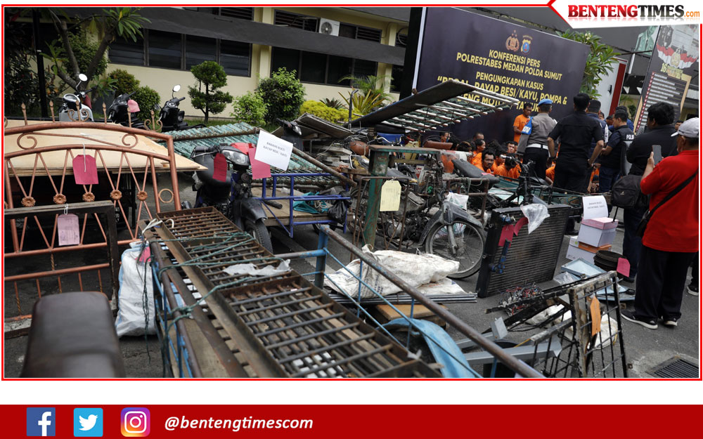 Selain itu, diamankan pula alat-alat yang digunakan dalam aksi pencurian, seperti motor, becak bermotor, kunci pas, tang, obeng, martil, hingga mobil pickup yang digunakan mengangkut hasil curian. Polisi juga menangkap dua karyawan penadah besi curian di kawasan Medan Tembung, sementara pemilik usaha botot masih diburu.