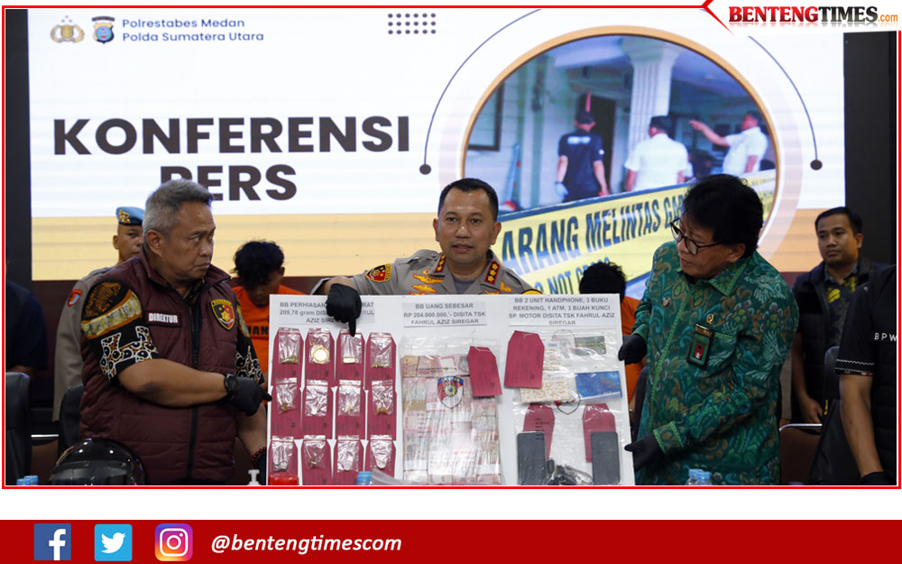 Konferensi pers turut dihadiri Dir Reskrimum Polda Sumut, Kombes Ricko Taruna Mauruh, plt Kabid Labfor AKBP Abdul Karim Tarigan, Ketua Pengadilan Tinggi Medan, Dr H Siswandriyono, Kasubdit Fiskom Labfor, AKBP Anang Kusndi, Kasat Reskrim, AKBP Bayu Putro Wijayanto, Kapolsek Sunggal, Kompol Bambang G Hutabarat, dan Kasi Humas, AKP Halashon Sihotang.