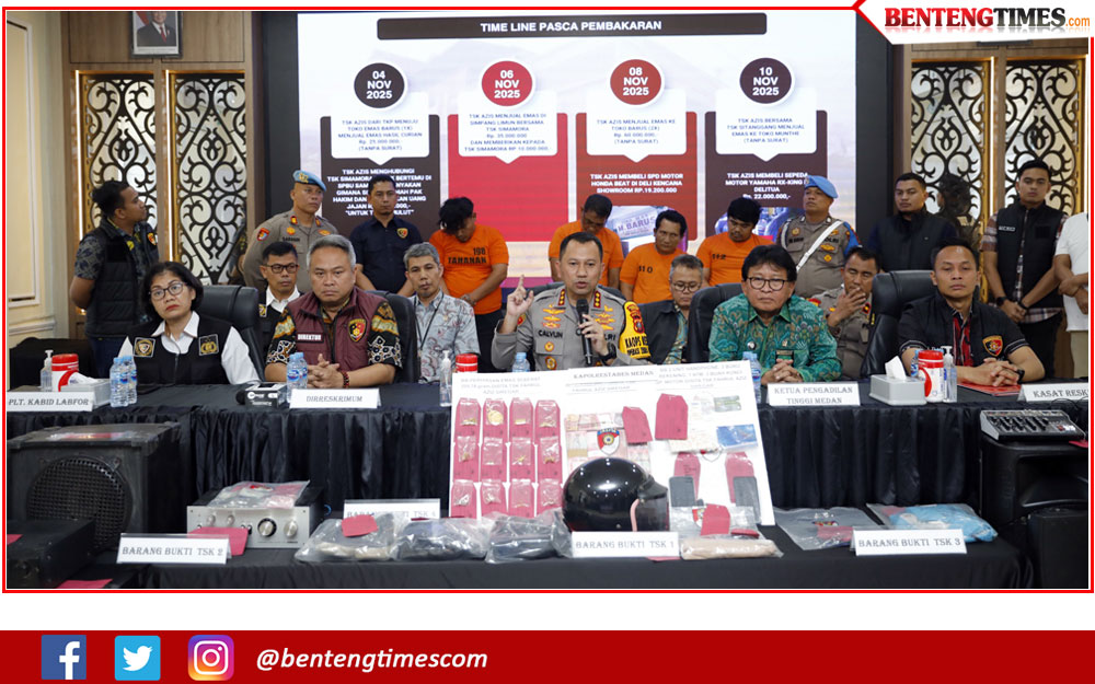 Polrestabes Medan mengungkap secara terang kasus pencurian dan pembakaran rumah Hakim Pengadilan Negeri (PN) Medan, Khamozaro Waruwu, dalam konferensi pers di Aula Patriatama, Jumat (21 11/2025). Dari penyidikan, mantan sopir korban, Fahrul Azis Siregar, ditetapkan sebagai pelaku utama yang merencanakan pencurian perhiasan dan membakar kamar rumah hakim untuk menghilangkan jejak.