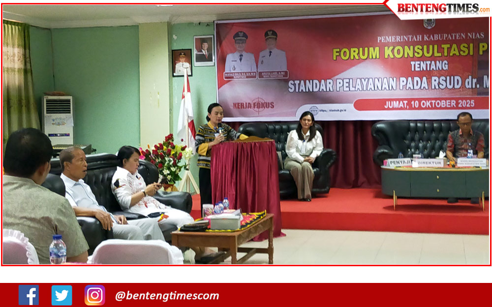 Hal itu disampaikan dalam kegiatan Forum Konsultasi Publik yang digelar di aula rumah sakit, Jumat (10/10/2025). Kegiatan tersebut dihadiri perwakilan Dinas Kesehatan, Pemberdayaan Perempuan dan Keluarga Berencana Kabupaten Nias, Kepala Cabang BPJS Kesehatan Gunungsitoli, tokoh masyarakat, akademisi, tokoh agama, media pers, serta pengguna layanan rumah sakit.