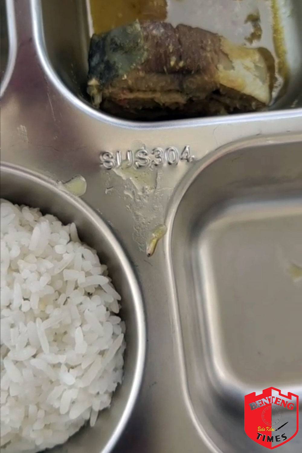 Tampak MBG yang sudah dihidangkan di Ompreng, diduga berulat dan beraroma bau.