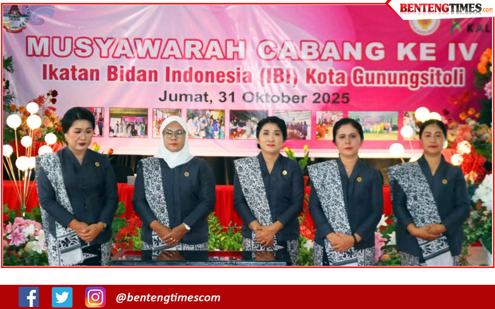 GUNUNGSITOLI, BENTENGTIMES.com– Asisten Administrasi Umum Sekretariat Daerah Kota Gunungsitoli, Yafet K Bu’ulolo, mewakili Wali Kota Gunungsitoli menghadiri Musyawarah Cabang (Muscab) ke-IV Tahun 2025 sekaligus pelantikan ketua terpilih Ikatan Bidan Indonesia (IBI) Cabang Kota Gunungsitoli periode 2025–2030, yang berlangsung di Ruang Rapat III Kantor Wali Kota Gunungsitoli, Jumat (31/10/2025).