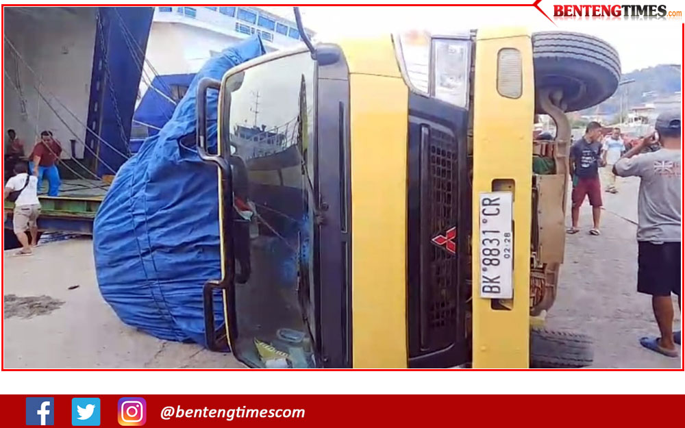 Peristiwa itu terjadi sekitar pukul 08.25 WIB, ketika truk hendak keluar dari dermaga usai kapal sandar. Sejumlah saksi menyebutkan lantai dermaga tampak amblas dan jebol, sehingga kendaraan kehilangan keseimbangan dan akhirnya terbalik di area pelabuhan.